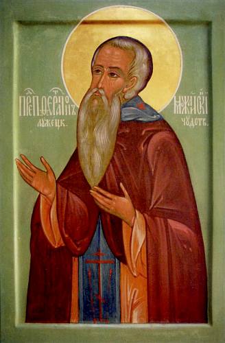 Далече зело слышано бысть богоугодное житие твое, преподобне. И от конец земли Русския притекоша к тебе любящии безмолвие. Ты же сих приемляй с любовию, яко отец о обращении заблуждших чад радовался еси. Темже и мы вопием ти: