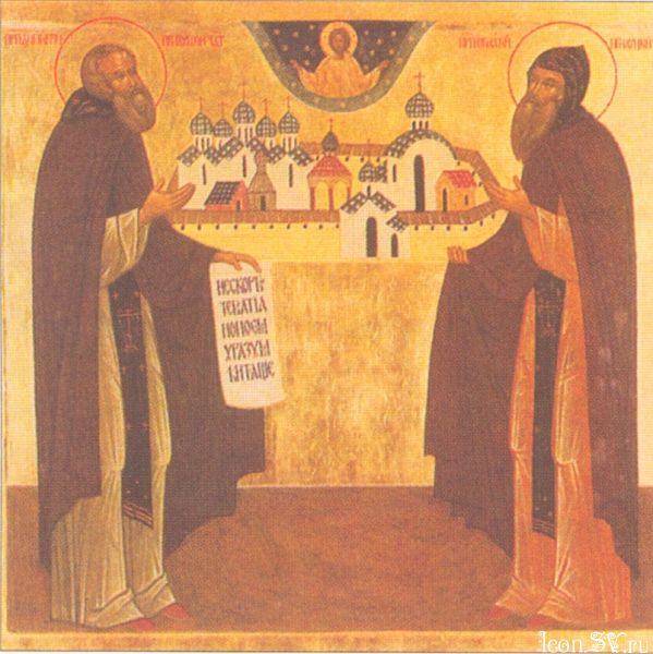 В это вре­мя нена­ви­дя­щий доб­ро враг ро­да че­ло­ве­че­ско­го вну­шил ве­ли­ко­му мос­ков­ско­му кня­зю Иоан­ну Ва­си­лье­ви­чу нена­висть к род­но­му бра­ту его, бла­го­вер­но­му кня­зю Ан­дрею Ва­си­лье­ви­чу Уг­лич­ско­му, и его сы­но­вьям, се­му Иоан­ну и Ди­мит­рию, и он по­ве­лел схва­тить их, на­ло­жить на них тя­же­лые око­вы, све­сти в го­род Пе­ре­я­с­лавль и за­клю­чить в тем­ни­цу. Иоан­ну бы­ло то­гда 13 лет от ро­ду, а Ди­мит­рию – 12. Двух до­че­рей кня­зя Ан­дрея не тро­ну­ли и оста­ви­ли в Уг­ли­че на сво­бо­де, хо­тя удел и при­со­еди­ни­ли к ве­ли­ко­му кня­же­нию. Но так как Пе­ре­я­с­лавль на­хо­дил­ся неда­ле­ко от Моск­вы и на са­мой до­ро­ге из нее к Уг­ли­чу – ме­сту кня­же­ния Ан­дрея, а все это мог­ло на­по­ми­нать на­ро­ду об уз­ни­ках и воз­буж­дать в нем со­жа­ле­ние к ним, че­го ве­ли­кий князь, ко­неч­но, не же­лал, то де­тей кня­зя Ан­дрея ско­ро пе­ре­вез­ли на Бе­ло­озе­ро так­же в тем­ни­цу, а сам Ан­дрей скон­чал­ся в Москве 6 но­яб­ря 7002 (1493) го­да. По смер­ти ро­ди­те­лей юных кня­зей пе­ре­вез­ли в Во­лог­ду, где так­же дер­жа­ли в тяж­ких око­вах и в са­мом тес­ном за­клю­че­нии. Все их иму­ще­ство со­сто­я­ло из од­ной ико­ны Бо­жи­ей Ма­те­ри «Всех скор­бя­щих ра­дость» – на­след­ство и бла­го­сло­ве­ние их от ро­ди­те­ля.