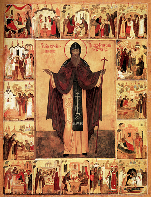 Пение всякое не довлеет ко прославлению величествия твоего, отче преподобне, твоими бо молитвами дивно явися сила Божия: молился бо еси пред пречистым образом Владычицы и тем обитель от разорения сохранил еси. Ныне и мы молим тя, не тщу сотвори надежду нашу и избави нас от враг наших, да во умилении зовем Спасителю Богу: Аллилуиа.