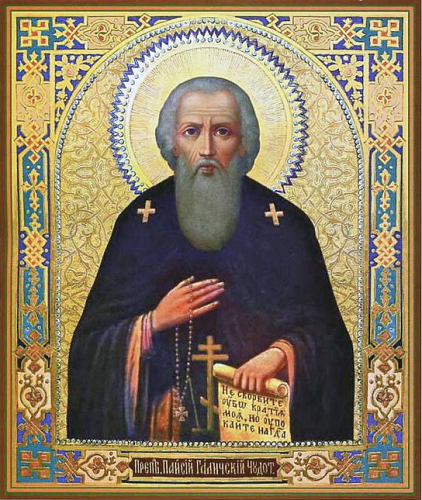 Ангела во плоти суща тя знаем, отче преподобне, и сего ради призываем тя, предстани нам скоро в помощь и избави нас от всякаго зла, да тобою спасшеся, всегда вопием ти: Радуйся, от утробы матерния освященный; Радуйся, светом боговедения просвещенный. Радуйся, яко мира сего красоту ни во что же вменивый; Радуйся, яко ангельское житие возлюбивый. Радуйся, яко собрал еси инок множество; Радуйся, яко научил еси имети крепкое мужество. Радуйся, яко учением твоим мнози получиша спасение; Радуйся, яко тобою улучиша общее небесное селение. Радуйся, яко чисте зриши Святую Троицу; Радуйся, яко всегда о нас молиши Пресвятую Богородицу. Радуйся, яко вся прошения наша исполняются; Радуйся, Паисие преподобне.