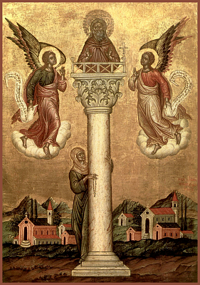 Странно житие свое сотворил еси, блаженне, егда видя народ мног, грядущ к тебе, уразуме, яко чтут и прославляют тя. Славы убегая, смирение же возлюбив, на столпе высоцем пребывати благоволил еси и, яко по степенем лествицы к небесней высоте восходя, и мраз, и дождь, и зной палящий претерпевая, Господеви непрестанно пел еси: Аллилуиа.