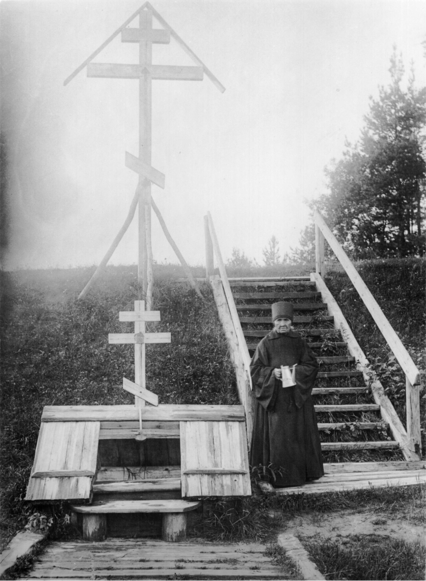 В 1879 году монахиня Евпраксия была возведена в сан игумении Свято-Успенского монастыря. В первые годы своего настоятельства она очень скорбела о недостатке безмолвия и прежней беспопечительности. По прошествии некоторого времени она избрала уединенный пригорок в Абрамовском лесу местом своего молитвенного подвига и отправлялась туда по постным дням недели с раннего утра до позднего вечера. На этом пригорке она приказала срубить небольшую часовню и, своими руками ископав колодезь у самой подошвы пригорка, водрузила над ним большой деревянный крест. В любую погоду, будь то сильный дождь или зимняя метель, уходила в свою пустынь матушка Евпраксия.