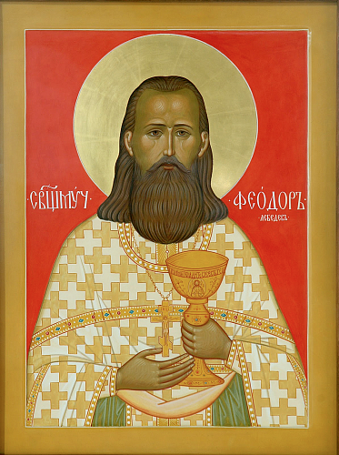Величаем тя, священномучениче Феодоре, и чтим честная страдания твоя, яже за Христа во утверждении на Руси Православия претерпел еси.