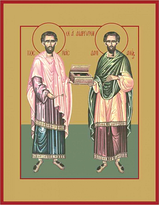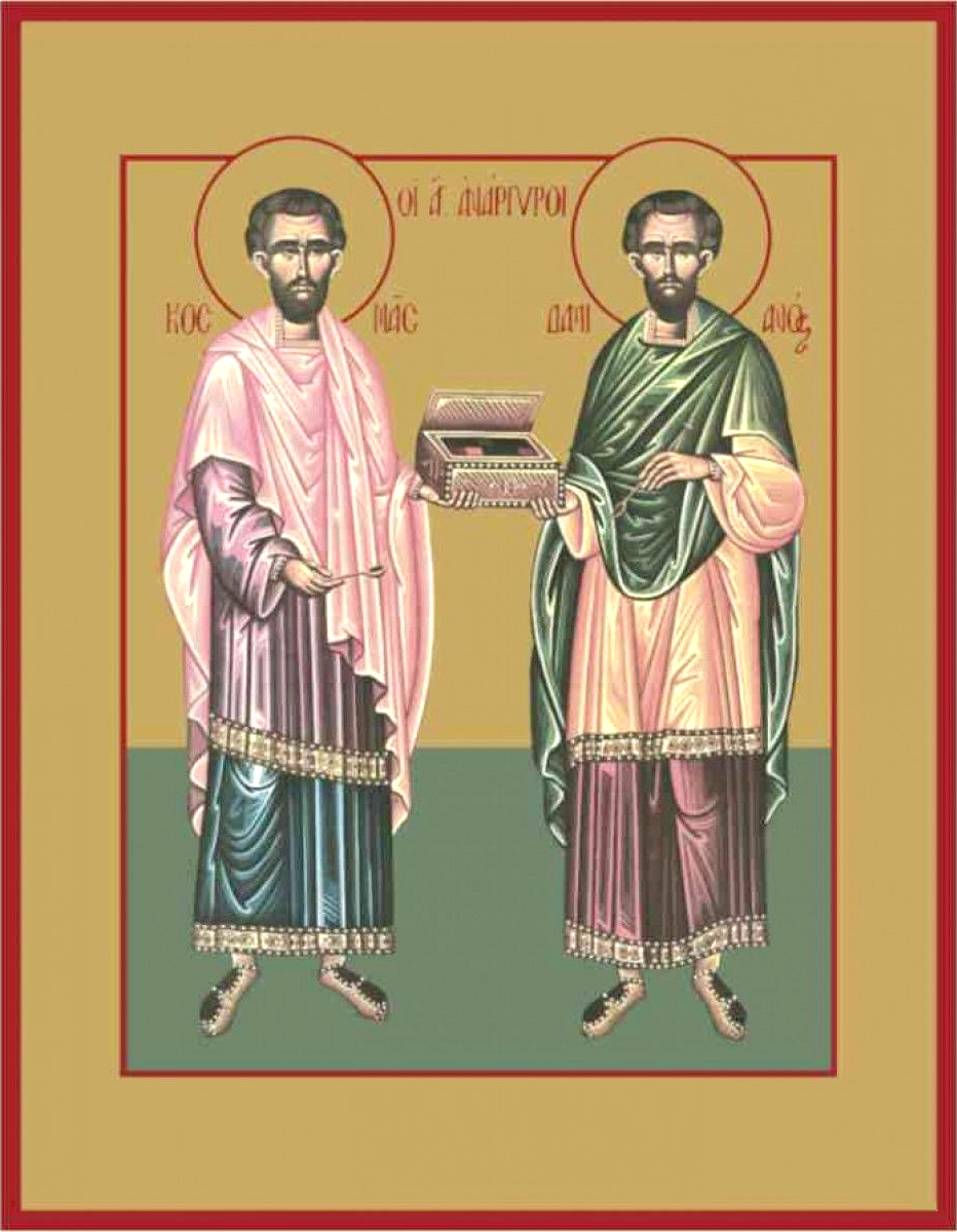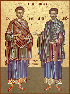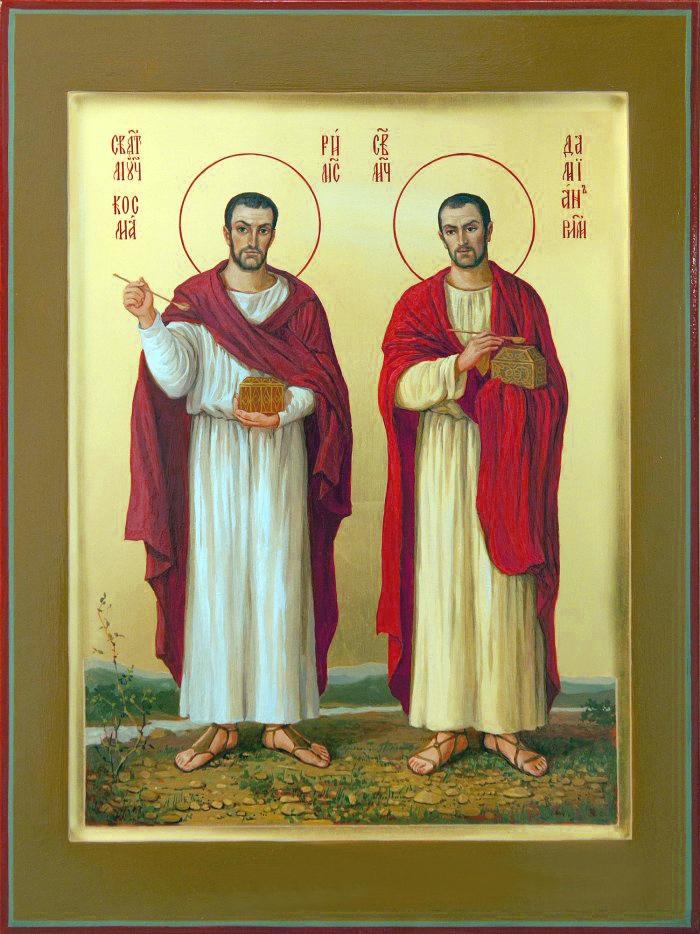 Святые мученики-бессребреники братья Косма и Дамиан жили в III веке по Рождестве Христовом в Риме, в период гонений на христиан, воздвигнутых императорами-язычниками. Подвигом своей жизни святые явили подлинно христианское употребление человеческого таланта: талант есть дар Божий, который надлежит использовать не в целях корысти, но для служения Богу и людям.