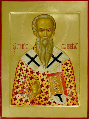 Ума пречуднаго и бодреннаго учителя, священнодействы Церковь украсивша, и мутным учением волхва, яко возбесневша волка, от Христовых овец словесы своими отгнавша, и невредно духовная своя чада сохранша, восхвалим, вернии, Стефана прехвальнаго, глаголюще: моли Христа Бога спастися душам нашим.