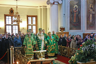 Богородичен: Владычице Благая, всех Творца во утробе Твоей заченшая и рождшая миру Спаса и Господа, Егоже моли, да избавит нас от всяких искушений и в чистом житии соблюдет нас.