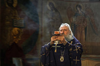 Живо́тнаго вдохнове́ния насыща́яся, блаже́нне, Боже́ственнаго Ду́ха, ду́хи отгоня́еши, неду́ги исцеля́еши и зове́ши, ра́дуяся: оте́ц на́ших Бо́же, благослове́н еси́.